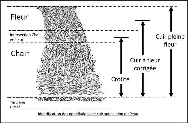 La « fleur » désigne la surface de la peau. C'est donc la structure du derme où sont implantés les poils et qui est aussi la plus dense.